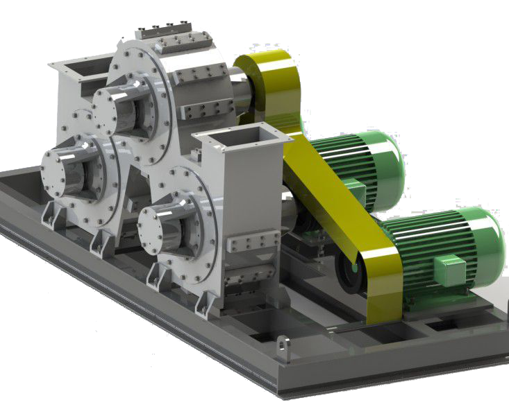 动连续地进入第一个改性筒内,流经各改性筒时受到不同方向的气流冲击,高速旋转的转子让特殊设计的改性筒内形成涡旋二相流,让物料和改性剂被充分打散。依靠转子高速旋转与粉体物料的冲击、剪切和摩擦作用所产生的热量,粉体和改性剂在筒内迅速升温,达到改性需要的温度,也因此让两者得以充分接触、混合,改性剂能迅速、均匀地与粉体颗粒表面作用,包覆于颗粒表面,完成对粉体的表面包覆改性。最后,成品将由后端的旋风集料系统冷却和收集。